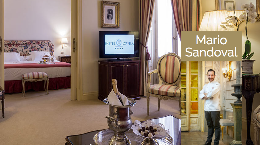 Mario Sandoval, dos estrellas Michelin, tres soles Repsol, Premio Nacional de Gastronomía 2013, acaba de publicar con éxito su libro Fermentados Gourmet. Mario es conocido por la aproximación al producto desde una perspectiva científica. Por su parte el Hotel Orfila cuenta con cinco estrellas, es el único hotel de la capital perteneciente a la prestigiosa asociación Relais & Châteaux y ha ganado de nuevo y por quinto año consecutivo el Premio al Mejor Hotel de Madrid según TripAdvisor. Dos pesos pesados unidos por la pasión a la gastronomía y el gusto por la perfección.