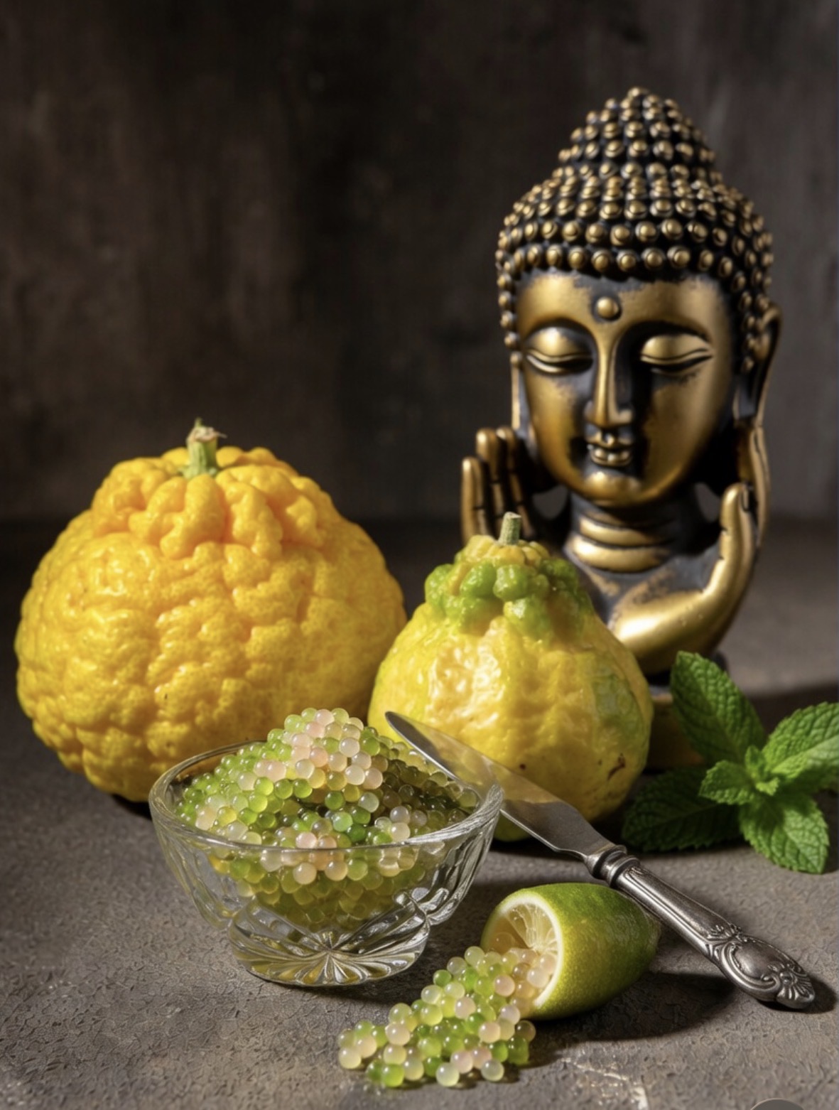 En cocina apenas tiene pulpa, pero su piel y su albedo son extraordinariamente aromáticos — perfectos para aderezar pescados, hacer mermeladas y elevar la coctelería.