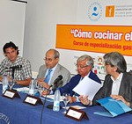 La última de las actividades de hoy martes ha sido una Mesa Redonda con la presencia de varios conocidos bloggers que han repasado la actualidad de la gastronomía 2.0. Mikel Iturriaga, de El Comidista, Susana Pérez y Jesús Cerezo, de Webos fritos, Marta Borruel, de Reyno Gourmet y Rosa Ardá de Velocidad Cuchara, han sido los protagonistas de un coloquio en el que han participado activamente todos los asistentes al Curso y en que las conclusiones principales han sido que para que un Blog funcione lo primero que se puede exigir al blogero es ganas, periodicidad, interacción con los lectores, seriedad y no dejarse convencer por determinados productos sólo por el hecho de que las marcas los regalen, porque es el camino más rápido para perder la credibilidad.